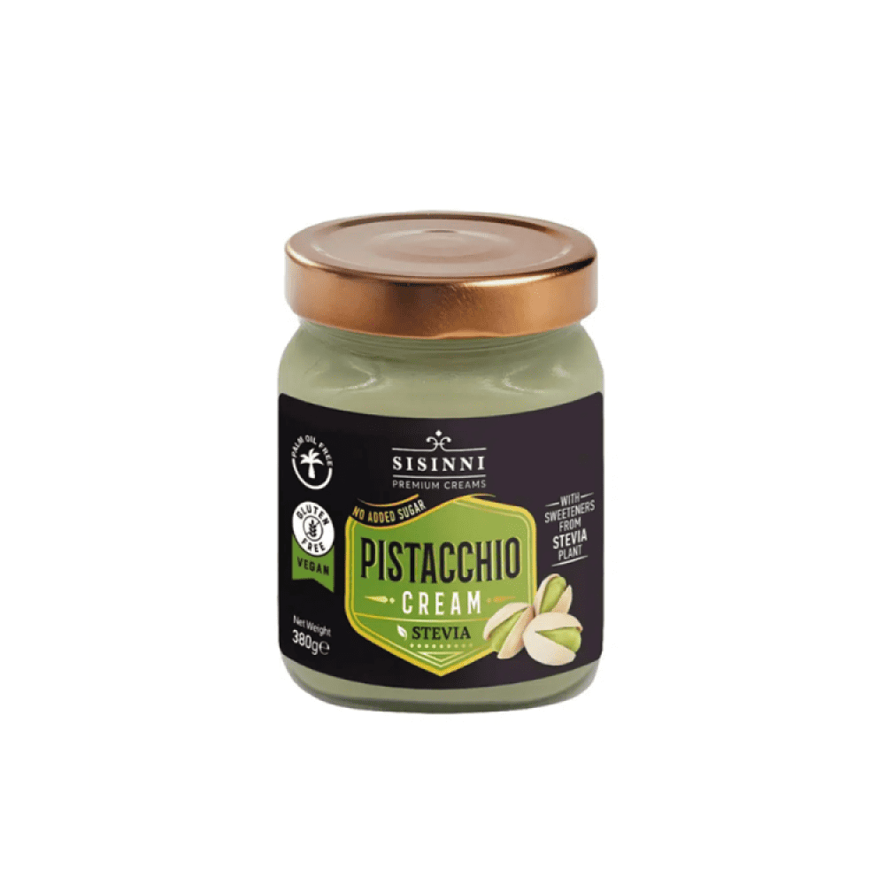 Συστατικά: Πάστα φιστικιού (25%), Γλυκαντικά: Μαλτιτόλη και γλυκοζίτες στεβιόλης (εκχύλισμα στέβιας), Φυτικά έλαια (ηλιέλαιο, βαμβακέλαιο), άμυλο καλαμποκιού, Γαλακτωματοποιητής: λεκιθίνη σόγιας, Αλάτι, Χρωστική: χλωροφύλλη