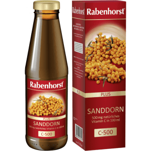 Περιέχει πάνω από 190 θρεπτικά συστατικά με ιδιαίτερα υψηλή περιεκτικότητα στη βιταμίνη C, σε λιπαρά οξέα ω-3 και ω-7 όπως επίσης και τη βιταμίνη Ε. Ο χυμός ιπποφαές της Rabenhorst είναι ένα μείγμα από πολτό ιπποφαές και Acerola σε σκόνη πλούσιο σε φυσική βιταμίνη C καθώς και αντιοξειδωτικά. Η περιεκτικότητα σε βιταμίνη C είναι 500mg για κάθε 100ml. Μία κουταλιά της σούπας (15ml) καλύπτει την συνιστώμενη ημερήσια ποσότητα βιταμίνης C κατά 125%. Βοηθά πολύ σε περιόδους έντονης δραστηριότητας, αδυναμίας, ανορεξίας, δίαιτας ή έντονου στρες. Είναι επίσης ιδιαίτερα τονωτικό για αθλητές, μαθητές, καπνιστές και βοηθά στην αντιγηραντική προστασία του οργανισμού.