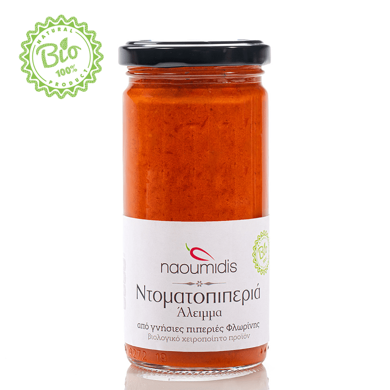 Συστατικά: Γνήσια πιπεριά Φλωρίνης, ντομάτα, άγριο σκόρδο, θυμάρι, βασιλικό, αλάτι και έξτρα παρθένο ελαιόλαδο. Χειροποίητο προϊόν βιολογικής γεωργίας.