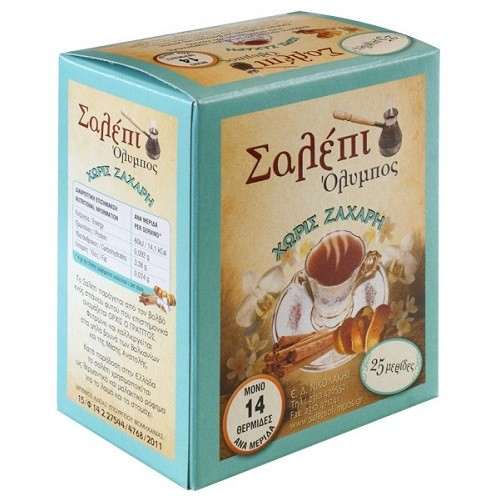Salepi is produced from the bulb of a rare plant that is scientifically called ORCHIS THE WRITTEN. It grows and is cultivated in the high mountains of the Balkans and the Middle East. Traditionally in Greece, salepi is used as a warming and emollient drink for the throat and stomach. Method of preparation: Thoroughly dissolve the contents of the envelope in 120 ml of water and boil it, stirring until it swells. The drink is ready! Ingredients: organic sugar, corn starch, cultivated salep 4%, cinnamon 1.2%, vanillin, cloves. It grows and is cultivated in the high mountains of the Balkans and the Middle East. Traditionally in Greece, salepi is used as a warming and emollient drink for the throat and stomach. Preparation: Dissolve very well (so that it does not clot) a teaspoon of salep in 150 ml (as much as a medium cup) of cold water and boil it, stirring well until it swells. If you want a sweetener (honey, stevia, fructose, sugar, etc.) you have to add it from the beginning together with the salepi. Ingredients: corn starch, cultivated salepi 12%, cinnamon 3.5%, ginger 0.7%, vanillin, clove, nutmeg.