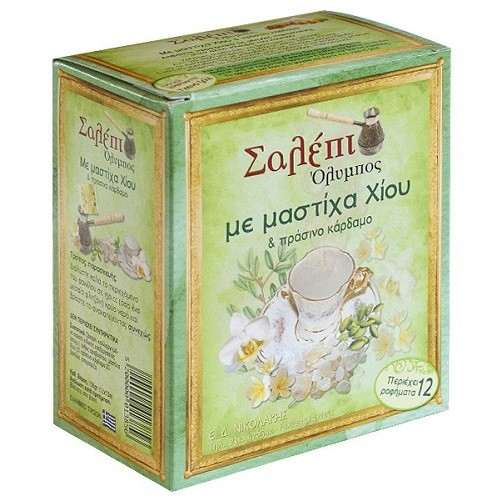 Традиционно, Салепи се използва като затопляща и успокояваща напитка за гърлото и стомаха. В комбинация със специалния вкус на шафран и неговите свойства като антиоксидант, тромболитик, противовъзпалително допринася за доброто здраве на организма. Успокоява болките в бъбреците и улеснява храносмилането. Шафранът е богат на ликопен, зеаксантин, каротин α, β и γ, витамини от група В и етерични масла. В комбинация с мастика на Chios, той допринася значително за облекчаването на пептичната язва, подпомага храносмилането и облекчава храносмилането. Много изследвания подчертават мастика като билка с чудесни антиоксиданти и антимикробна активност. Приготвяне: Разтворете добре съдържанието на плика в 150 мл (около средна чаша) студена вода и кипете, като бъркате постоянно, докато набъбне. Състав: захар, нишесте (царевица), култивирани салепи 4%, джинджифил 0,6%, кардамон 0,3%, ванилин, маточина Chios 2%.
