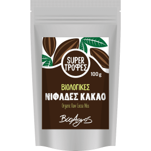 Οι νιφάδες κακάο ή Cacao Nibs είναι σπασμένα μικρά κομμάτια από ψημμένα φασόλια κακάο που έχουν καθαριστεί. Το κακάο σε αυτή τη θρυμματισμένη μορφή έχει πλούσια γεύση και τραγανή αίσθηση. Οδηγίες Χρήσης: Συνδυάστε με ξερά φρούτα, γιαούρτι ή το πρωινό σας μούσλι. 2-3 κουτάλια της σούπας ημερησίως.